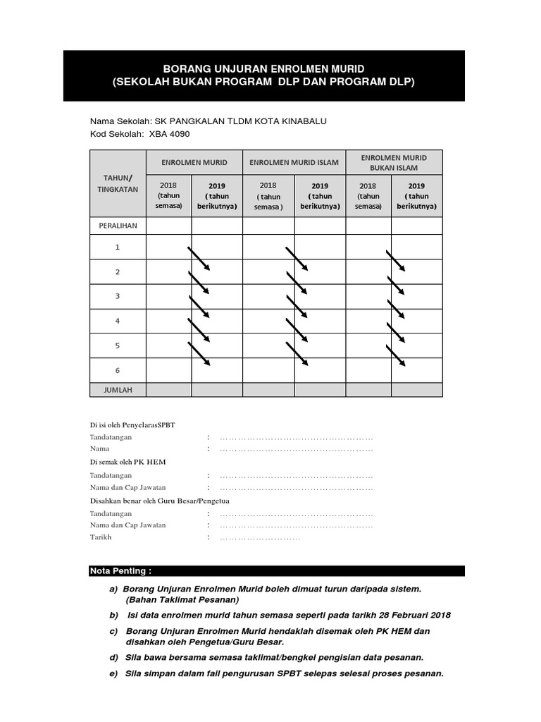Borang Unjuran Enrolmen Murid Program Dlp Pdf