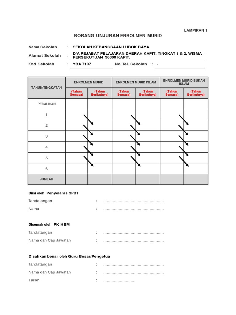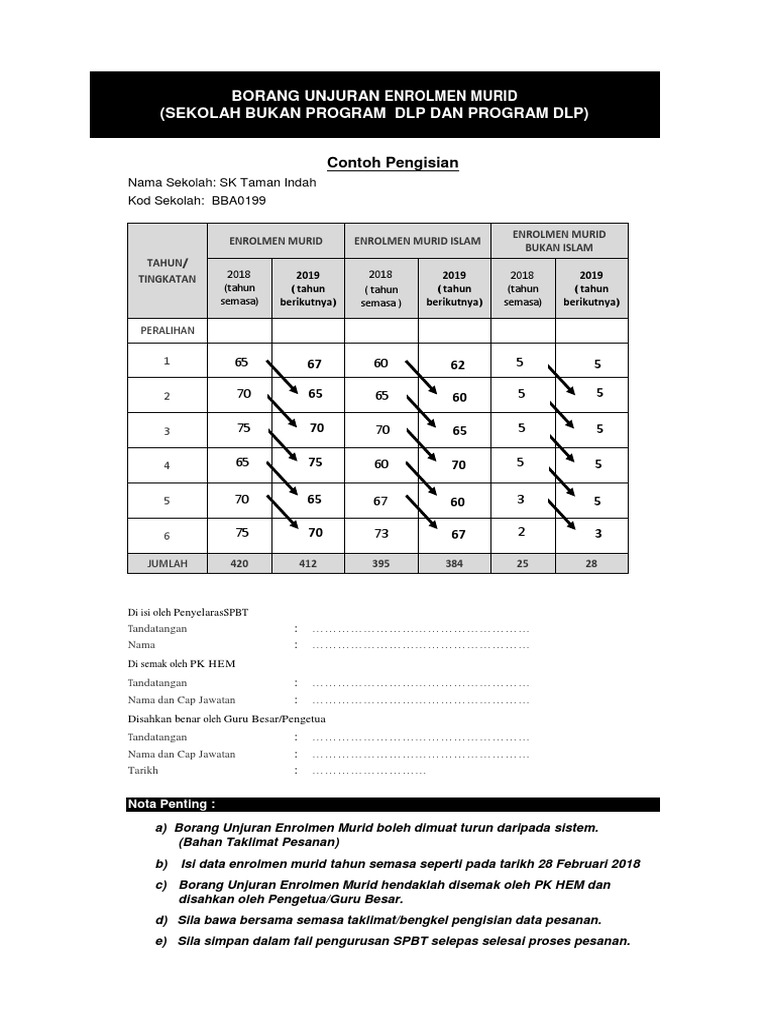 Contoh Format Borang Unjuran Enrolmen Murid Sekolah Rendah Pdf