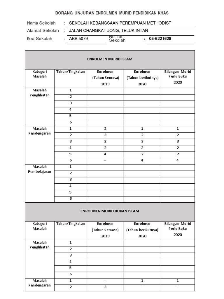 Borang Unjuran Enrolmen Murid Pendidikan Khas Pdf
