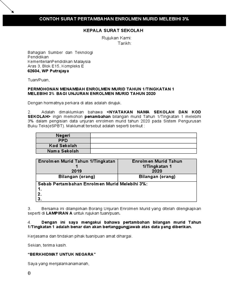 Contoh Surat Penambahan Pengurangan Enrolmen Murid Pdf